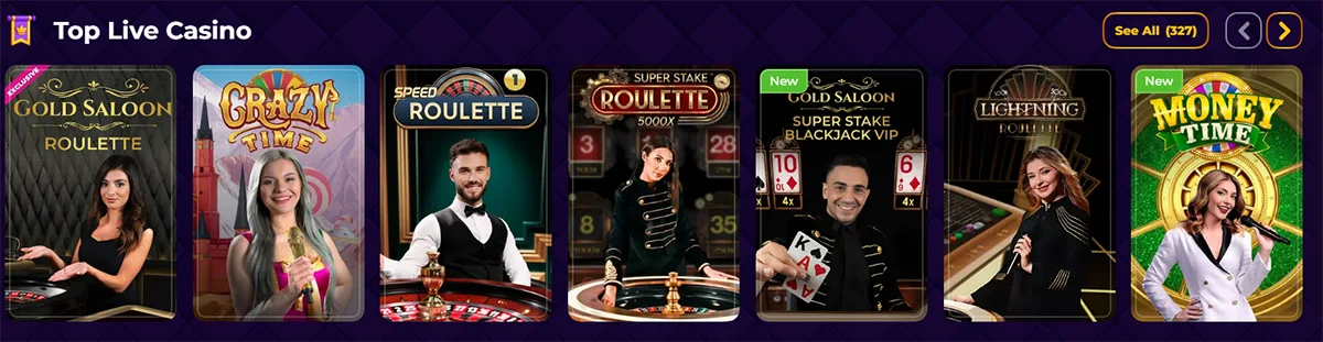 Canadian players benefit from Interac deposits and our 10% live casino cashback up to $300 weekly. We recommend using this cashback to extend playing sessions without additional deposits.