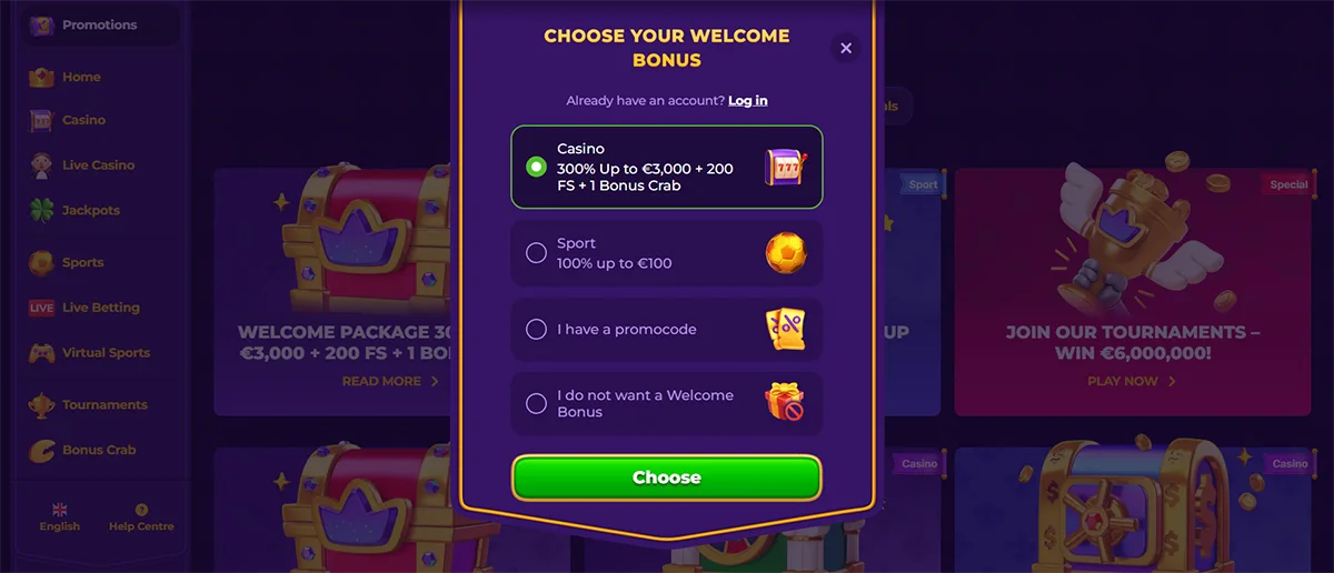 Naast het bonusgeld ontvang je 200 gratis spins plus een speciale Bonus Crab feature. De inzetvereisten voor de stortingsbonus zijn 35x het bonusbedrag.